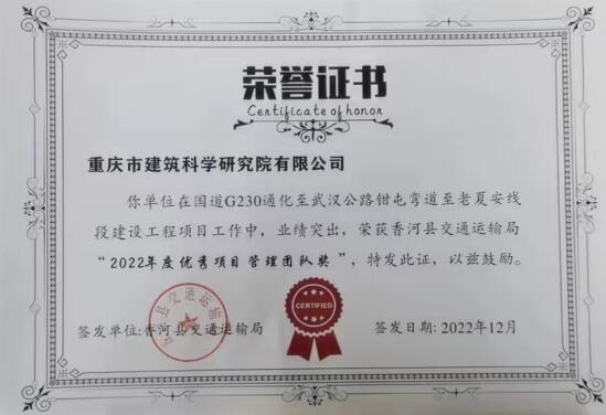 國道G230通武線項目,投資總估算約為13.36億元,全長5.3公里,全線采用雙向六車道一級公路標準建設,設計速度80公里/小時,全線設特大橋1座。2022年6月20日正式開工建設以來,市建科院始終堅持高效統籌、科學調度,在保證質量和安全的前提下,督促項目監理部切實發揮監理職能,要求總承包項目部優化施工組織,協助政府相關部門強化拆遷調度,為項目質量、安全和投資年度目標的實現打下夯實的基礎,截止目前已完成投資約5.05億元,實現安全生產“零”事故,并獲得主管部門頒發的2022年度“優秀項目管理團隊獎”。