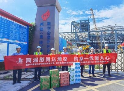 近日,重慶設計集團市建科院公司黨委副書記、總經理、董事張雪芹同志赴科學城分院承接鋼結構監測業務的西部(重慶)科學城科學會堂項目,慰問在高溫酷暑中堅守崗位的一線職工,為他們送去防暑降溫用品與真誠關懷。