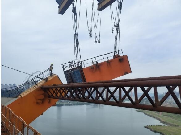 “拱肋已與Y構懸臂精準連接!”隨著地面對講機傳來激動的聲音,在歷經五個多小時吊裝作業(yè)后,3月26日,由重慶設計集團市建科院公司監(jiān)理的潼南東升大橋南岸左幅首段拱肋節(jié)段精準安裝就位,標志著大橋正式進入拱肋安裝階段,向提籃式鋼箱拱橋高精度合龍目標邁進重要一步。