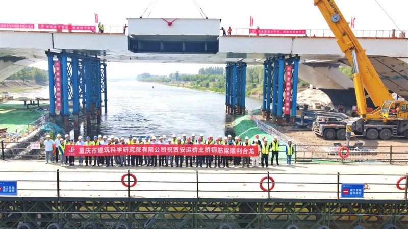 5月9日,由重慶設計集團所屬子企業重慶市建筑科學研究院有限公司代建的“國道G230通化至武漢公路鉗屯彎道至老夏安線段建設工程”(以下簡稱“國道通武線”)跨北運河特大橋主橋鋼結構箱梁順利合龍,向2024年年底通車目標邁進堅實一步。