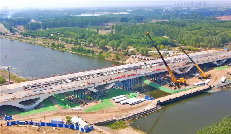 國道通武線跨北運河特大橋主橋鋼結構箱梁合龍