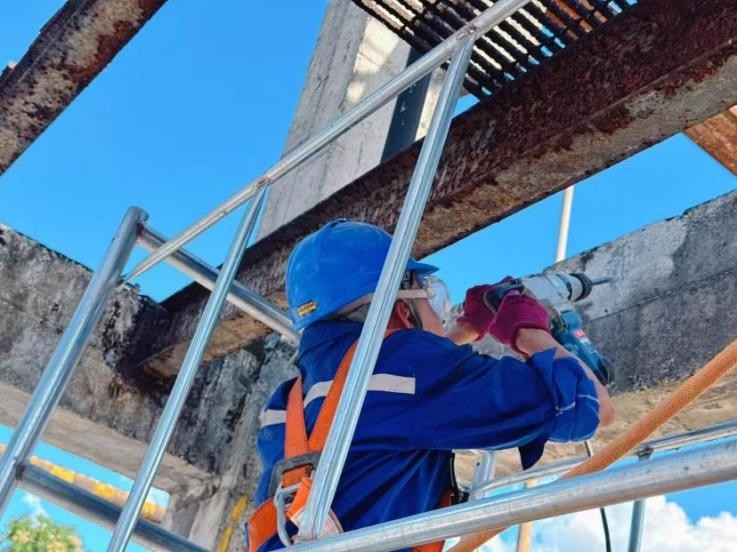 為保障項目高效推進,市建科院抽調骨干技術力量組成項目部。團隊成員迎酷暑、戰一線,全面梳理從加固設計到施工實施的一體化流程,精準把握系統性管理重點,通過各環節的無縫銜,全力保障工程質量和施工安全。