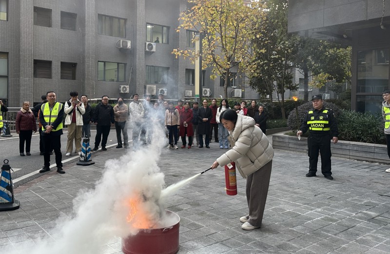 隨后,參訓員工在室外廣場進行了消防滅火實戰演練。物業管理處安保主管結合實際工作,圍繞“提、拔、瞄、壓”四字口訣細致講解了滅火器的正確使用方法與注意事項。參訓員工輪流上前進行滅火實操,確保人人過關,熟練掌握滅火技能、做到學以致用。